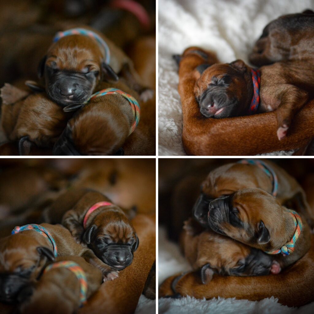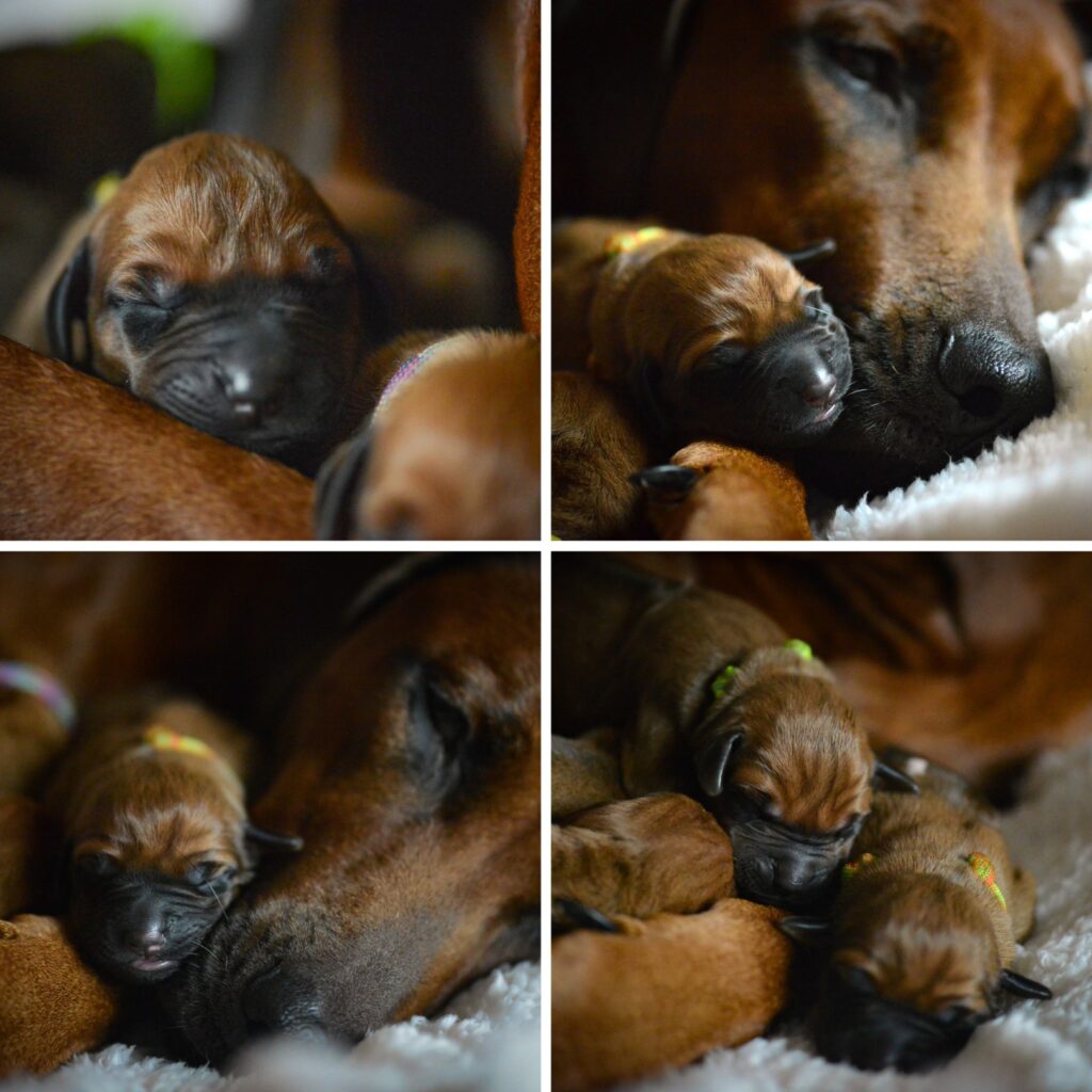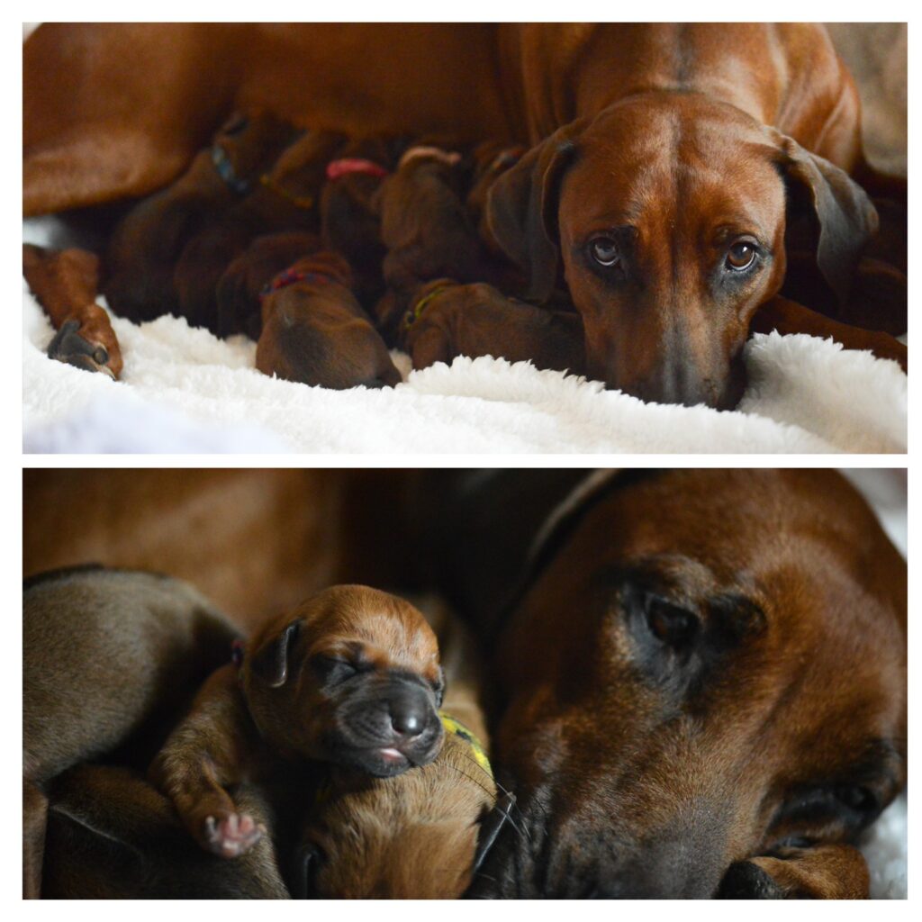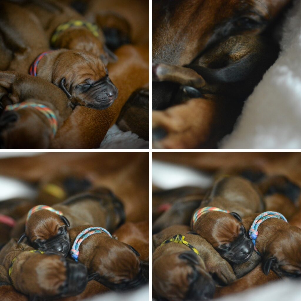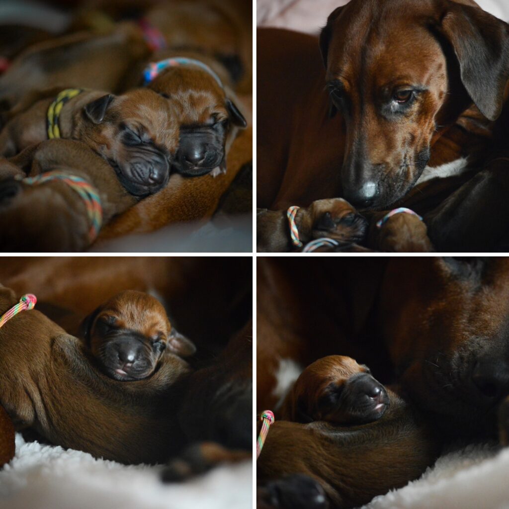Am 17. Oktober 2025 hat unsere Vania la Vision in ruhiger Geborgenheit und mit liebevoller Hingabe 11 gesunde Rhodesian Ridgeback Welpen zur Welt gebracht – 6 Hündinnen und 5 Rüden, stark, vital und mit dem ganz besonderen Strahlen, das nur Seelenhunde in sich tragen.