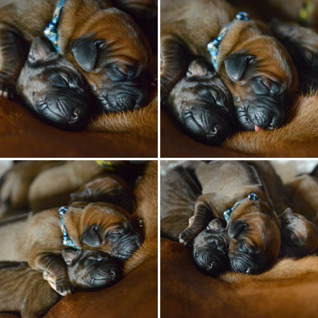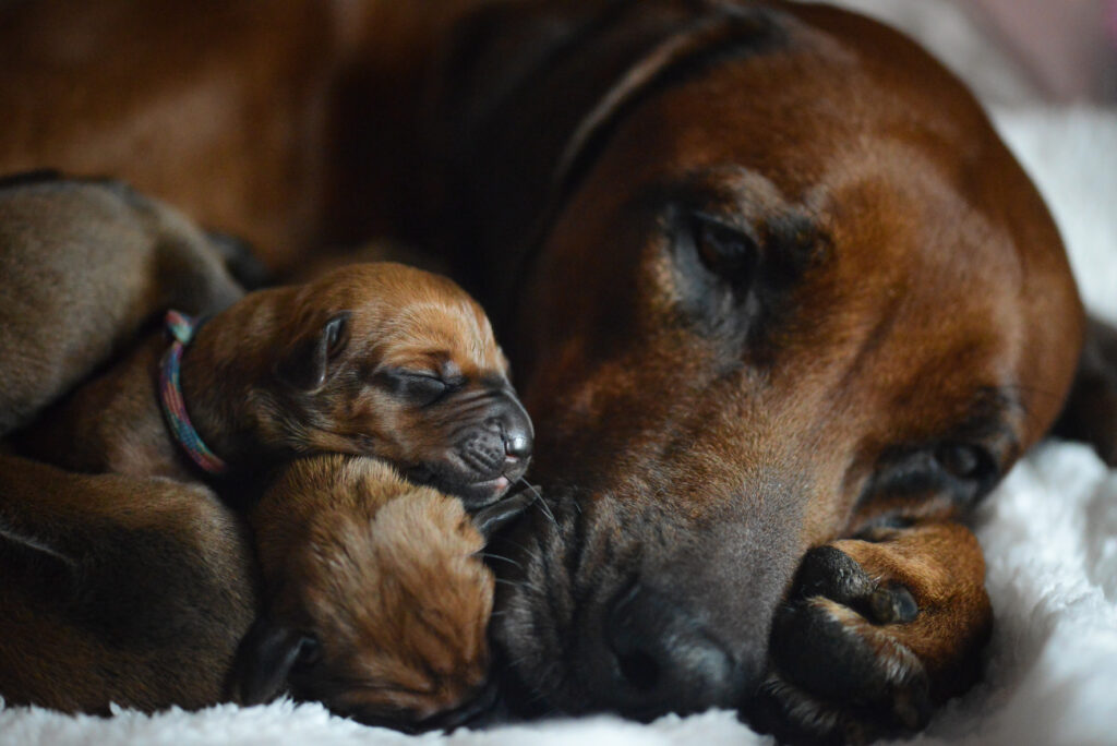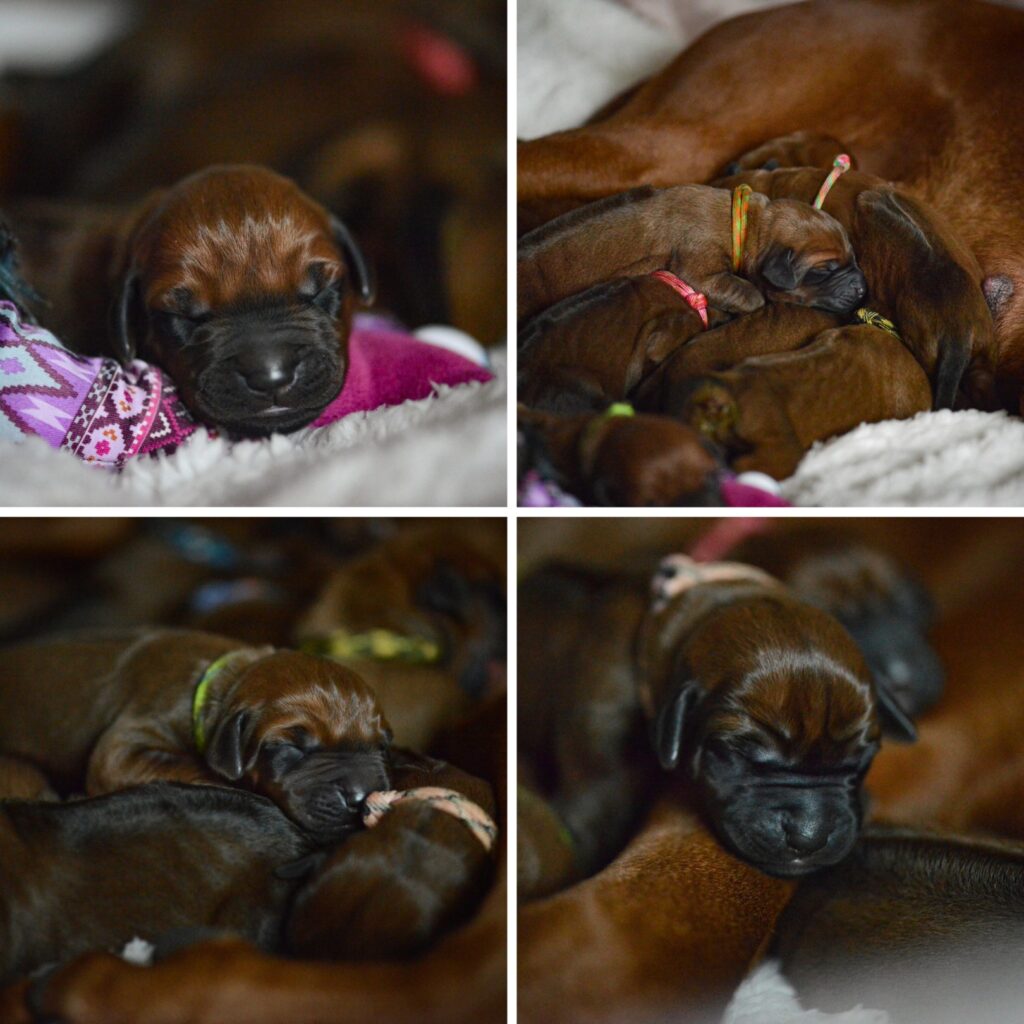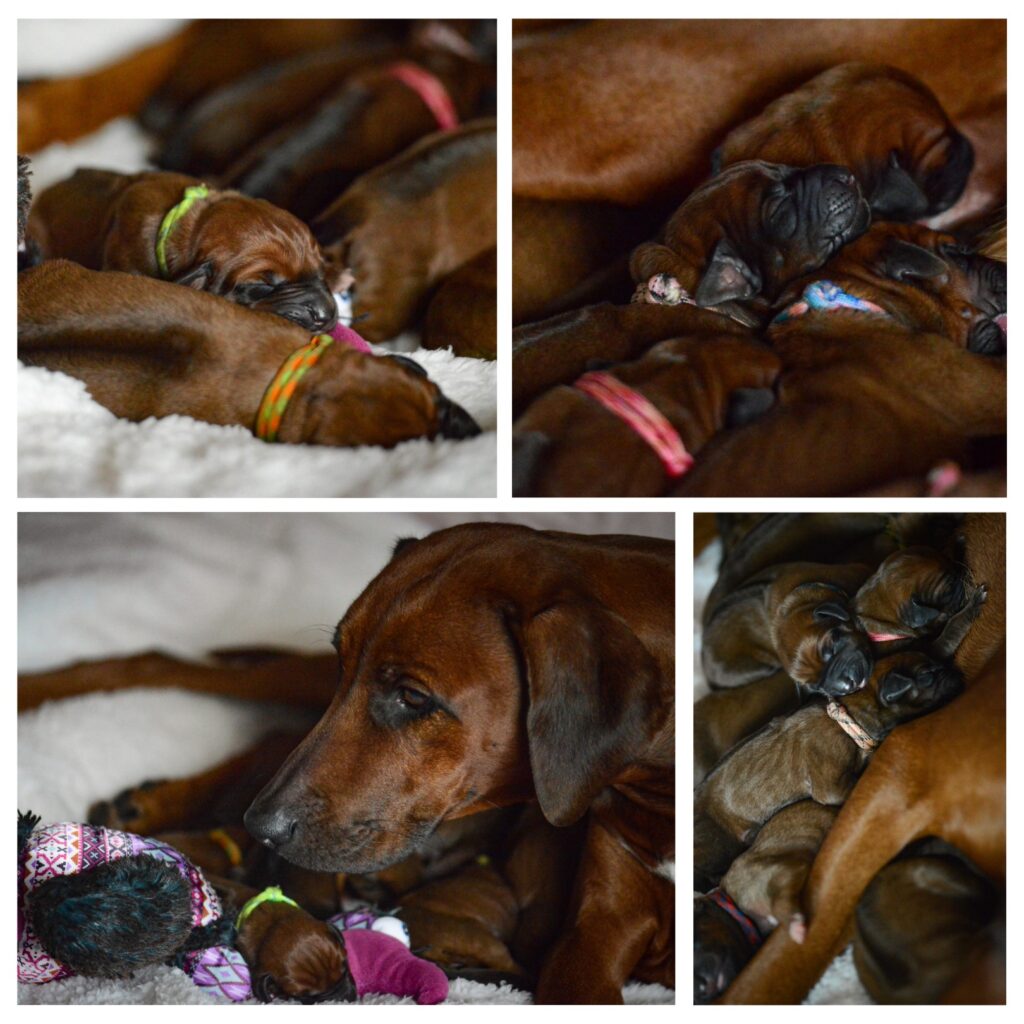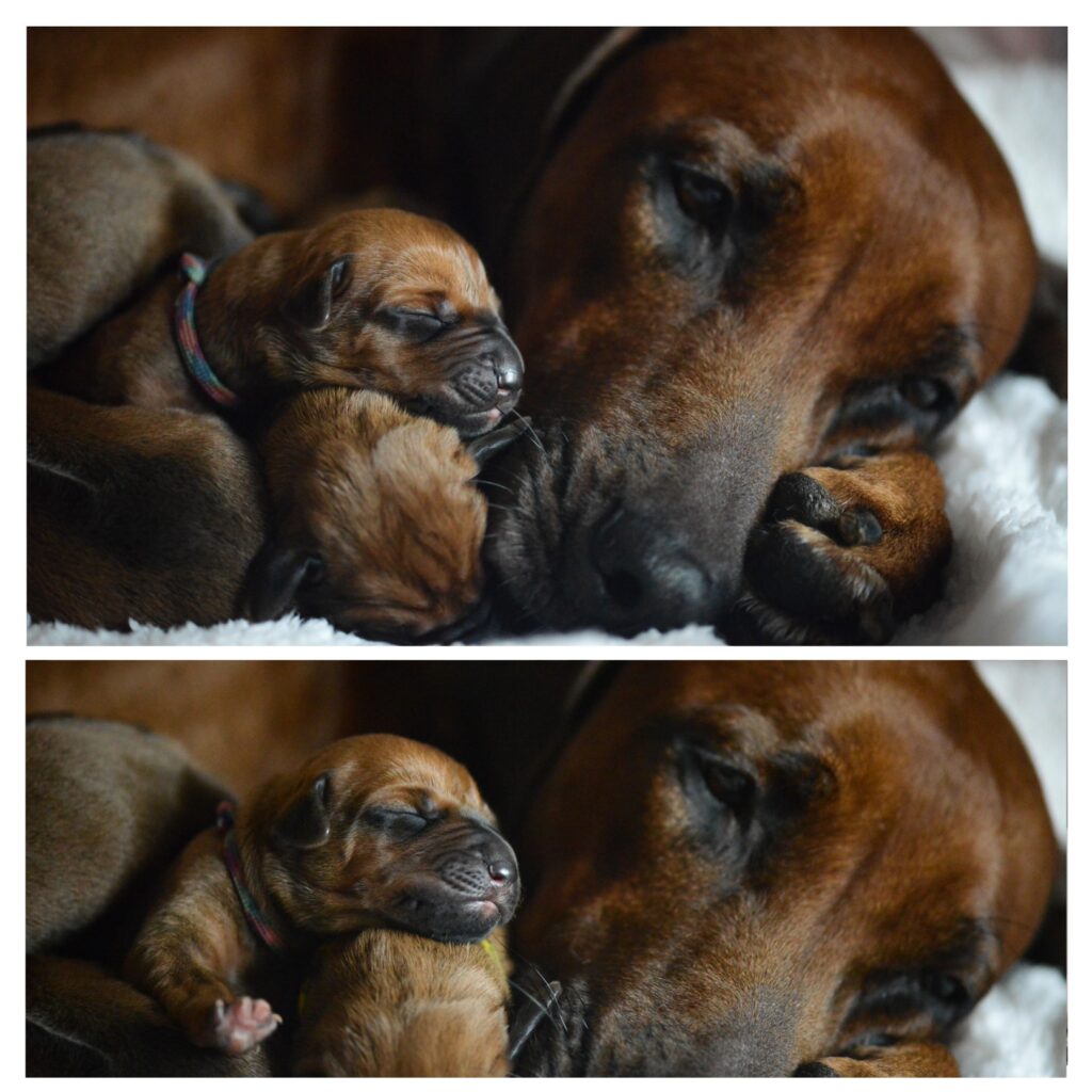 Am 17. Oktober 2025 hat unsere Vania la Vision in ruhiger Geborgenheit und mit liebevoller Hingabe 11 gesunde Rhodesian Ridgeback Welpen zur Welt gebracht – 6 Hündinnen und 5 Rüden, stark, vital und mit dem ganz besonderen Strahlen, das nur Seelenhunde in sich tragen.