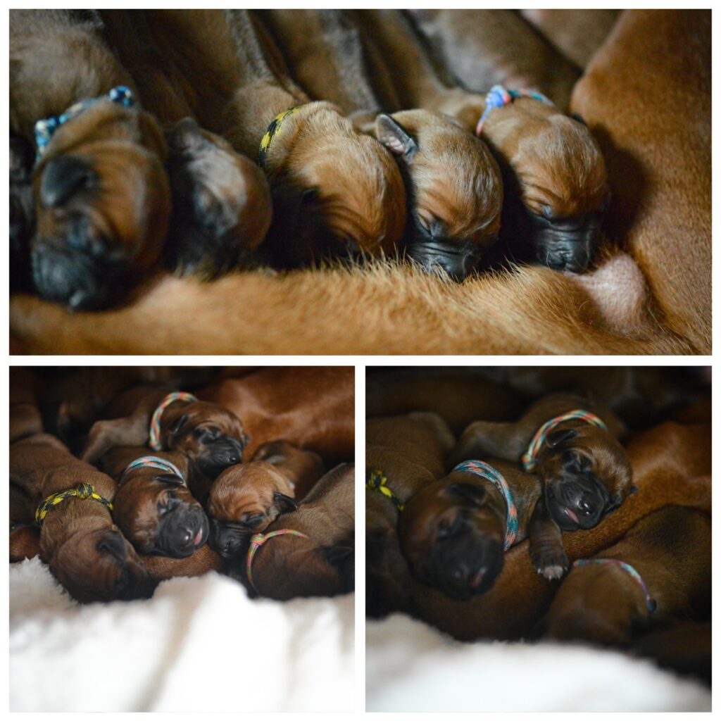 Wir sind voller Dankbarkeit und ehrlicher Rührung, dieses Wunder erleben zu dürfen – begleitet von unserem Herzensrüden Faira Ranger Hondoù, dessen Gelassenheit und tiefe Verbindung zu Vania sich nun in diesen kleinen Leben weiterträgt.